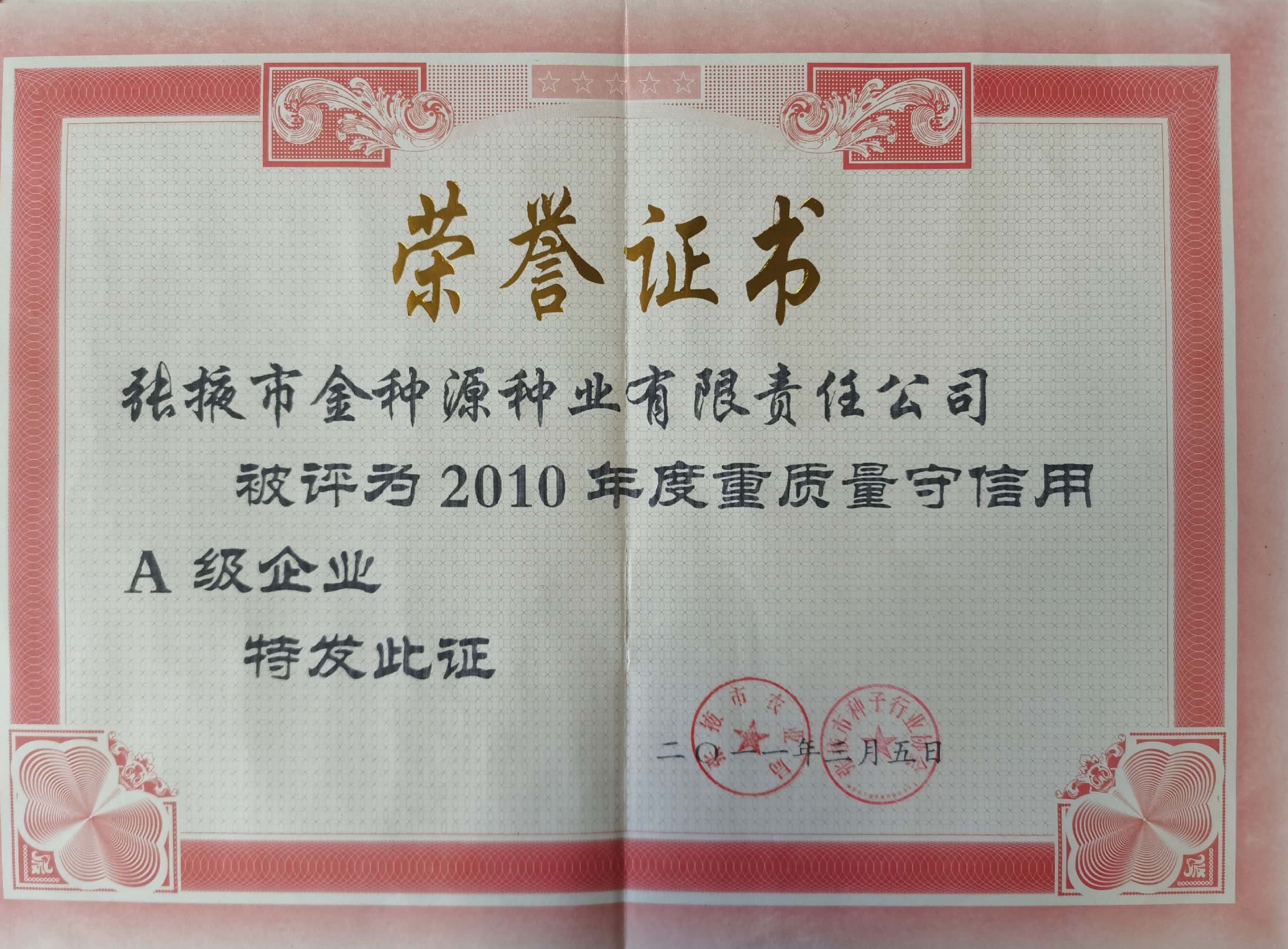 2010年重質(zhì)量守信用A級(jí)企業(yè)