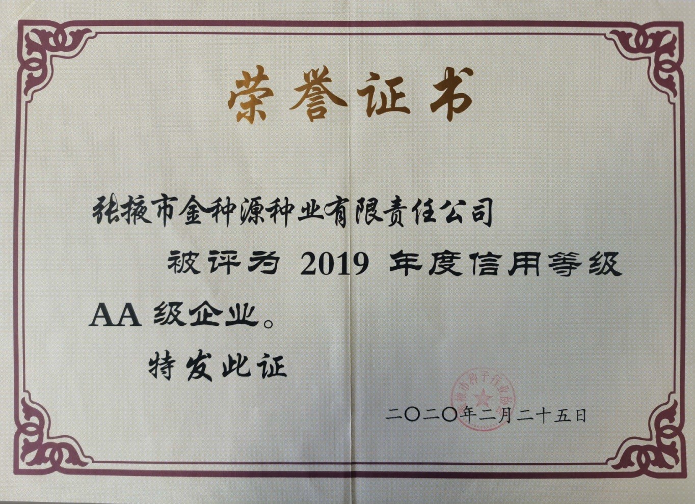 2019年信用等級(jí)AA級(jí)企業(yè)