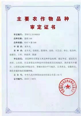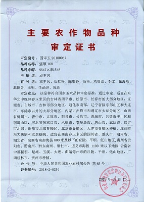 主要農(nóng)作物審定證書(shū)-強(qiáng)碩168(國(guó)家)