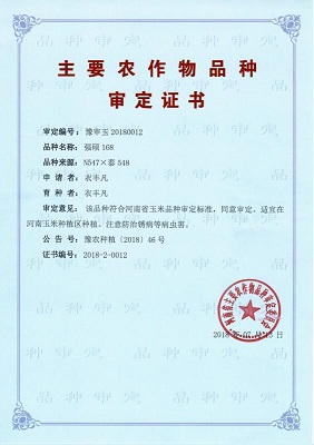 主要農(nóng)作物審定證書(shū)-強(qiáng)碩168(河南)