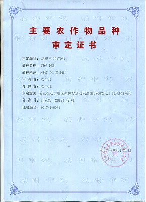 主要農(nóng)作物審定證書(shū)-強(qiáng)碩168(遼寧)