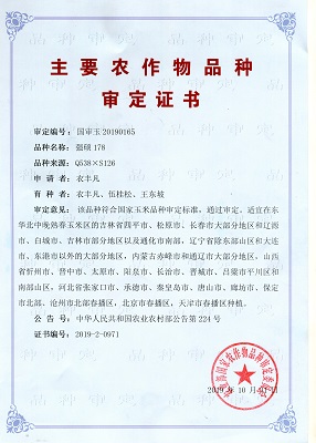 主要農(nóng)作物審定證書(shū)-強(qiáng)碩178(國(guó)家)