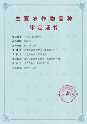 主要農(nóng)作物審定證書(shū)-強(qiáng)碩88(甘肅)