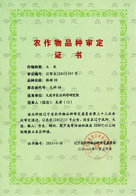 主要農(nóng)作物審定證書(shū)-強(qiáng)碩88(遼寧)