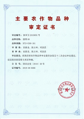 主要農(nóng)作物審定證書(shū)-強(qiáng)碩68(陜西)