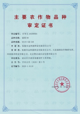 主要農(nóng)作物審定證書(shū)-強(qiáng)碩98(甘肅)