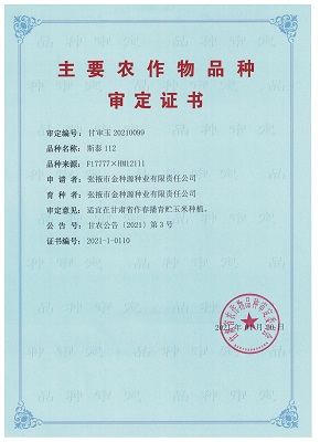 主要農(nóng)作物審定證書(shū)-斯泰112(甘肅)