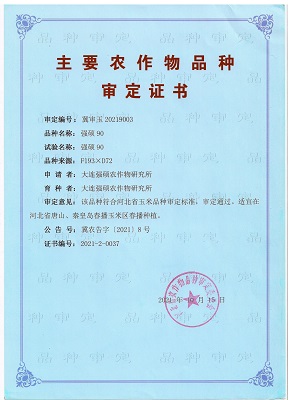 主要農(nóng)作物審定證書(shū)-強(qiáng)碩90(河北)