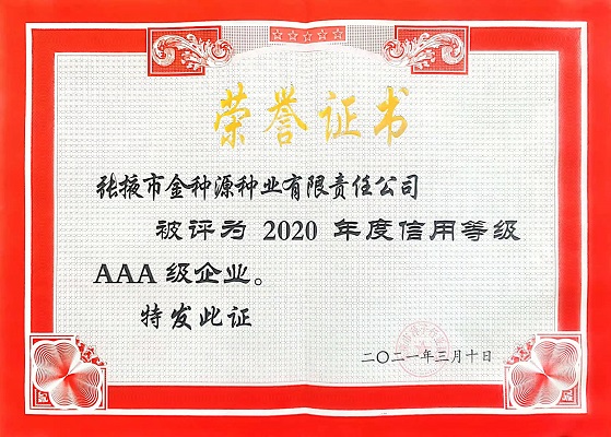 2020年度信用等級(jí)AAA級(jí)企業(yè)。